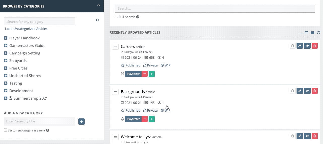 Organization is beautiful! Keep your worldbuilding organized with nested categories - and nest articles under articles - and create a stunning table of contents for your world!