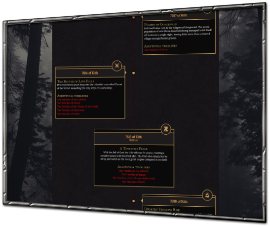 A very appropriate name, given that it's probably one of the largest timelines on World Anvil. It also contains every single historical event recorded in Ravarus, a noble-dark fantasy setting of incredible depth!